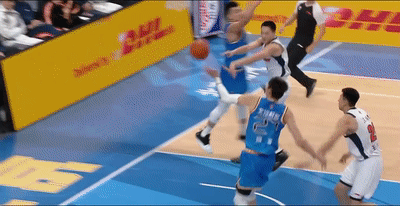 7分16秒,張文逸接胡隊助攻命中三分,這也廣東隊本土球員本場第一記運動戰進球!