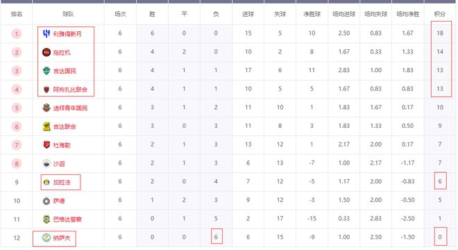 積分榜方面,西亞賽區利雅得新月6戰全勝高居榜首,拖拉機4勝2平保持不敗緊隨其后,兩隊早早提前鎖定前8。另外隨著迪拜青年國民客場輸球,4勝1平1負的吉達國民,阿布扎比聯合都是提前2輪鎖定了前8晉級淘汰賽階段。吉達聯合贏球止住頹勢后,緊追迪拜青年國民沖進前8,位列第6。東亞賽區,日本三支球隊包攬前3,而我們中超三強則是包攬倒數前3,中超3連冠的上海海港最慘,6輪難求一勝在東亞賽區墊底。