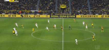 第45+1分鐘,阿德耶米突破傳中,布蘭特破門,多特1-0圣保利